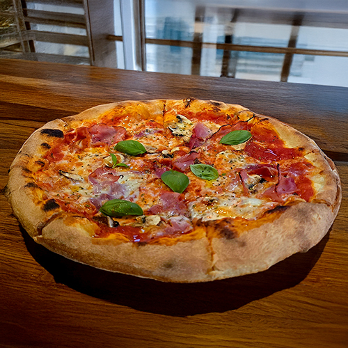 21.00Pizza blanche, tomates concassées, mozzarella di buffala, jambon cru.
